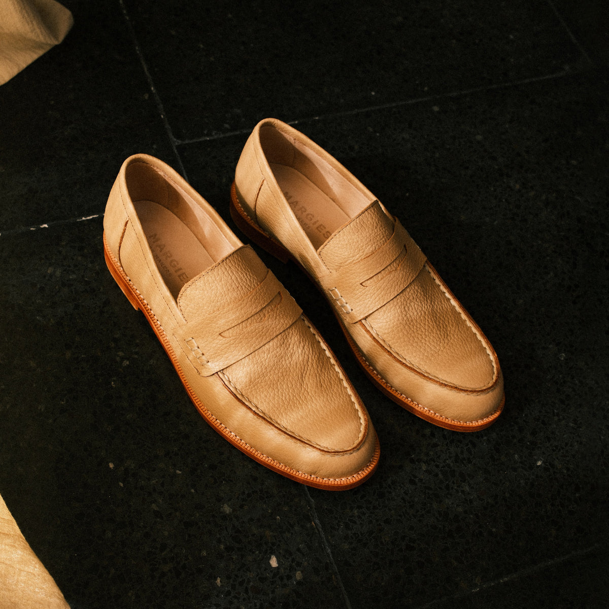 Mocasín Ciro Camel, exterior, interior y plantilla de cuero. Base de 2cm de alto.