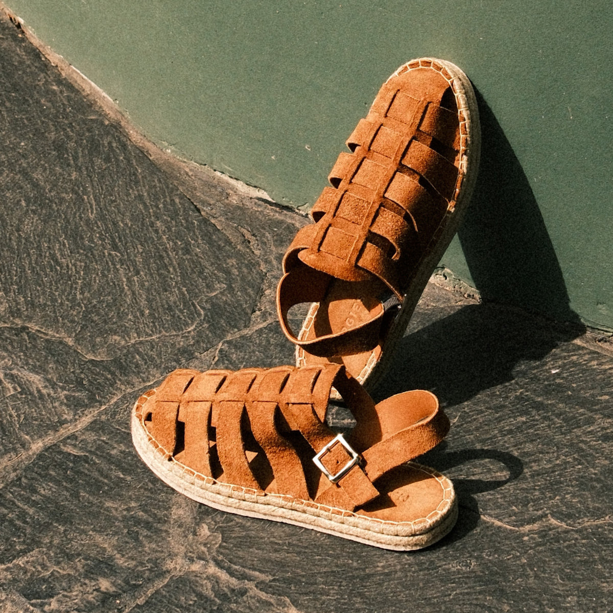 Sandalia Dion Coco, interior y plantilla de cuero. Base de 2 Cm forrada en yute.