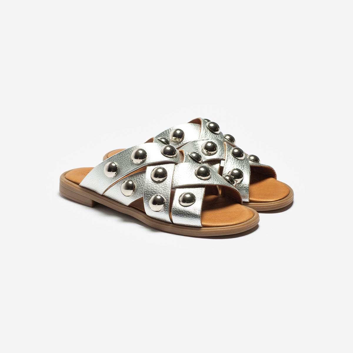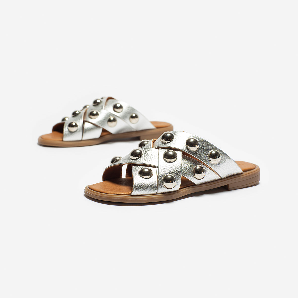 Sandalia Akira Plata, base 1 cm, interior y plantilla de cuero.
