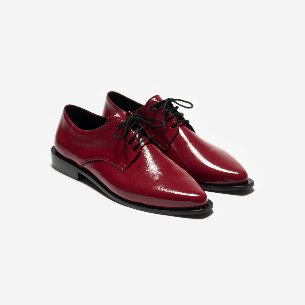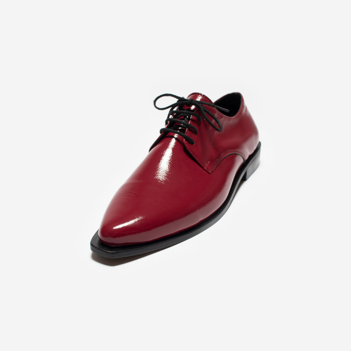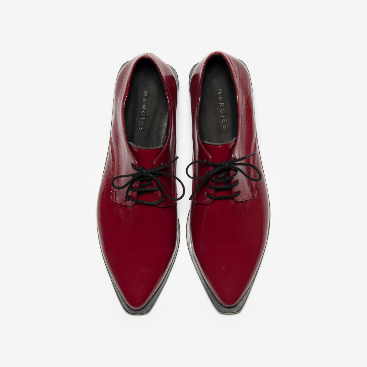 Abotinado Finn Charol Bordeaux, interior y plantilla de cuero.