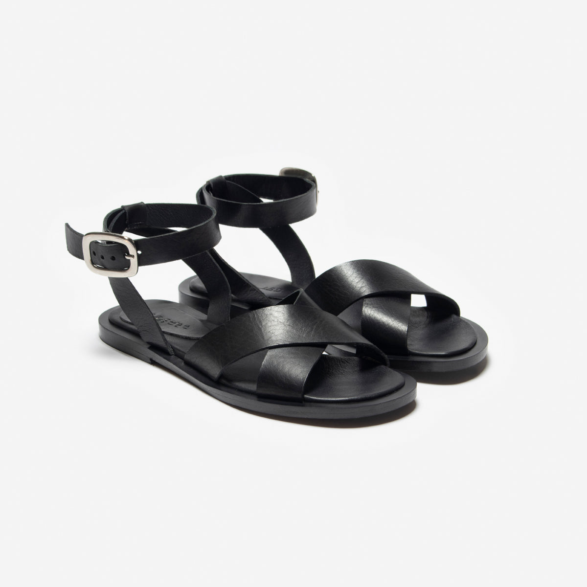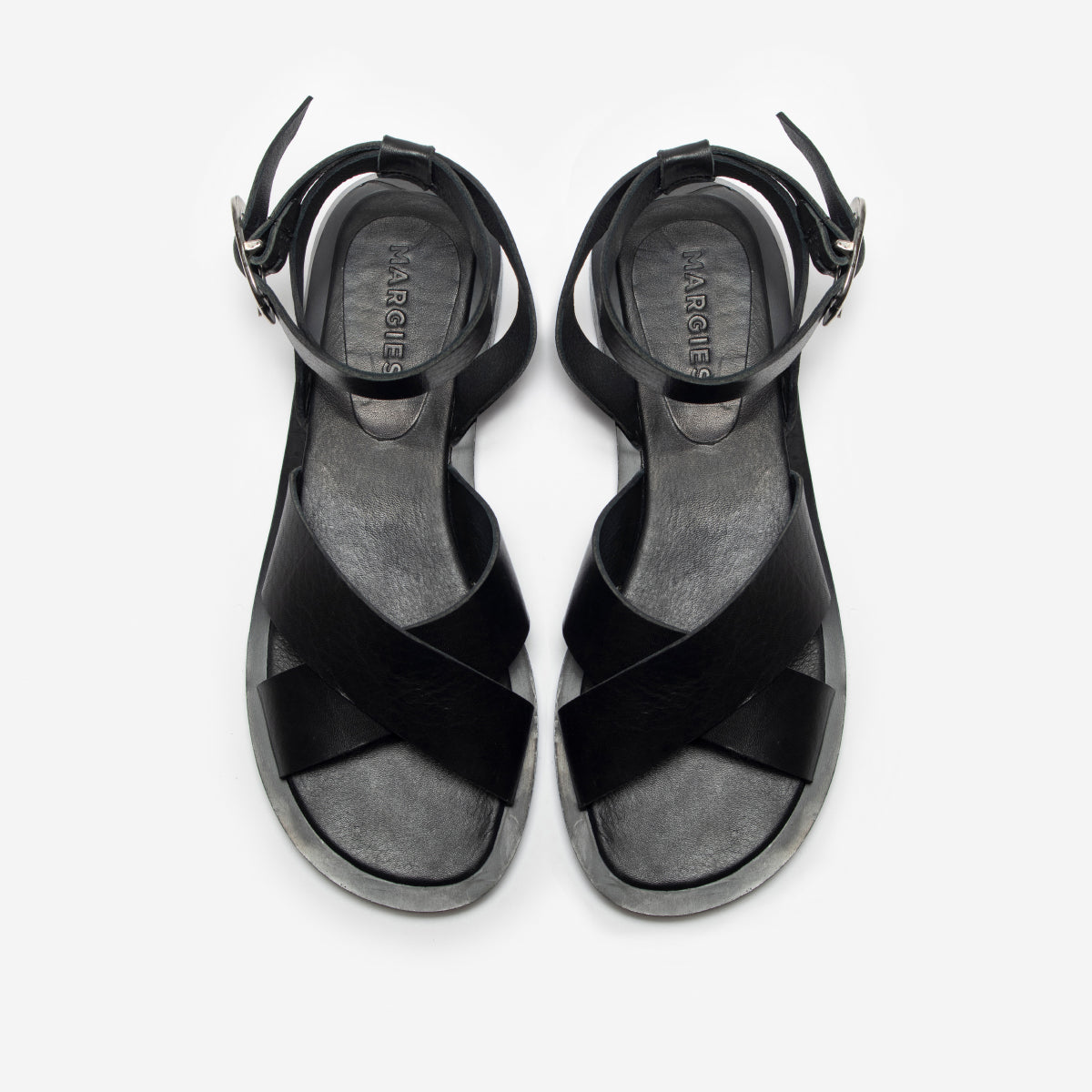 Sandalia Isabela Negro, interior y plantilla de cuero. Base de 1 Cm.