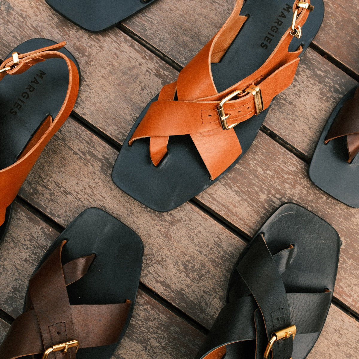 Sandalia Leira Negro, Base de 1 cm, interior y plantilla de cuero. Hebillas doradas.