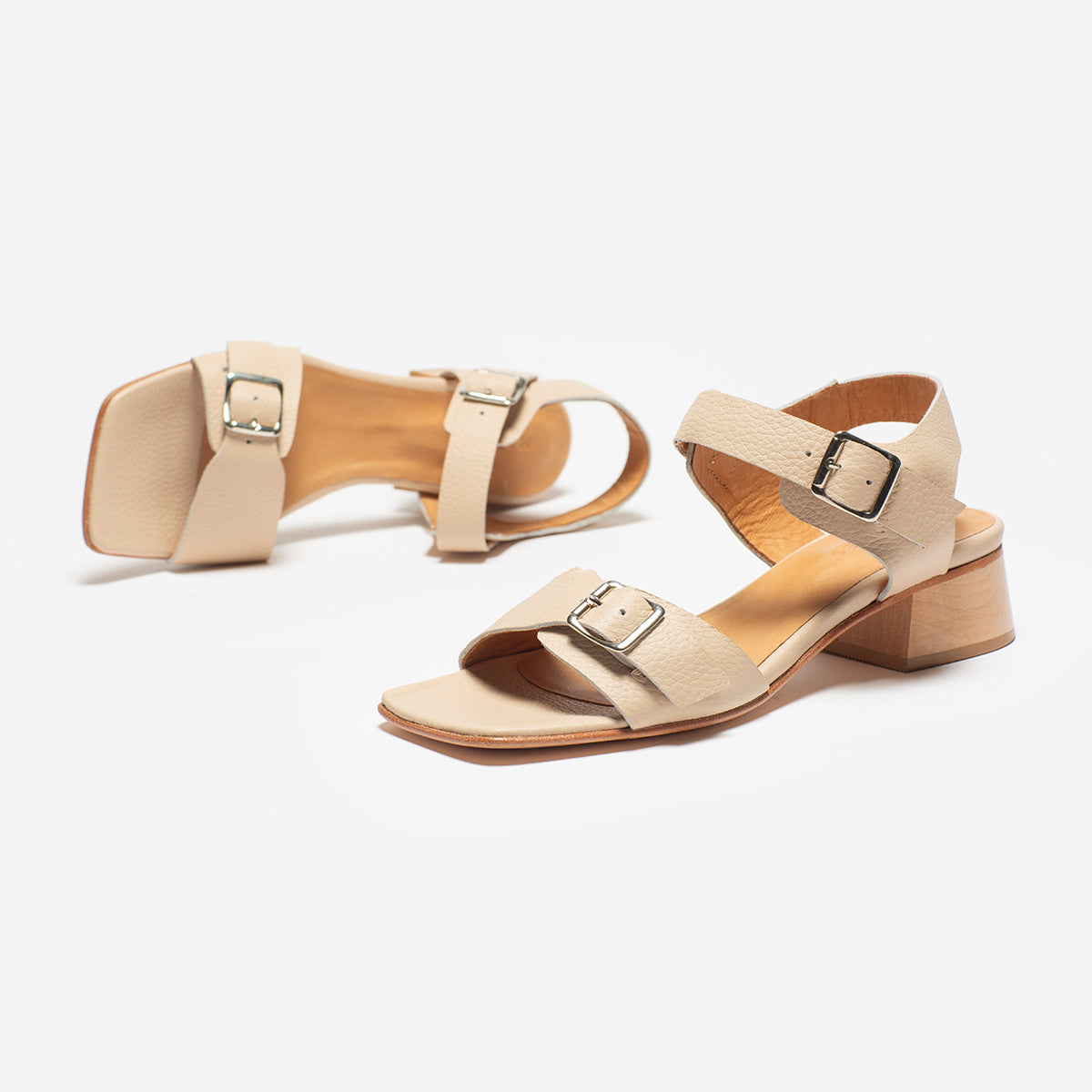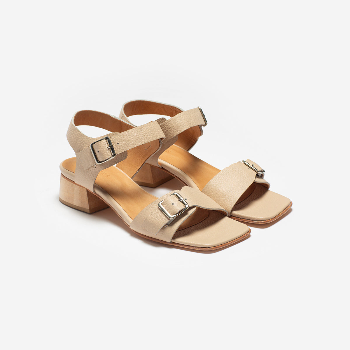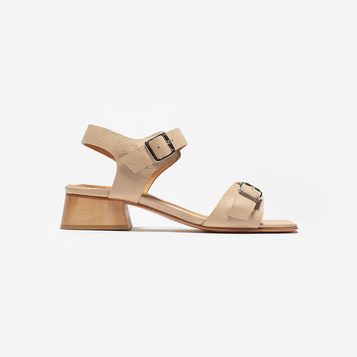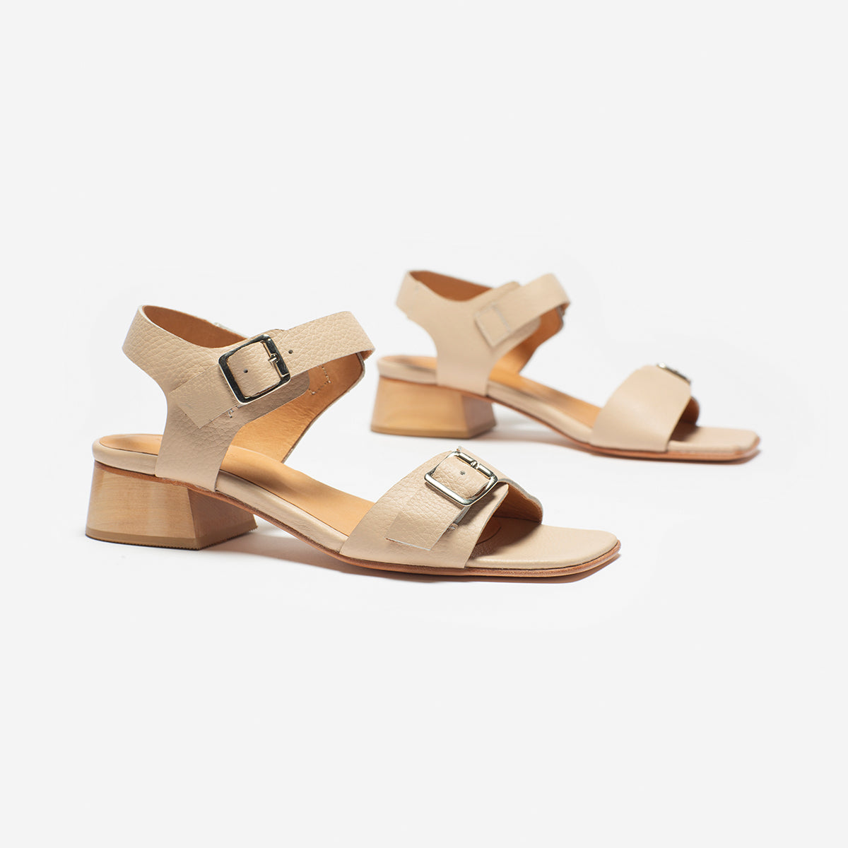 Sandalia Marvao Nude, interior y plantilla de cuero. Taco de madera de 4 cm.