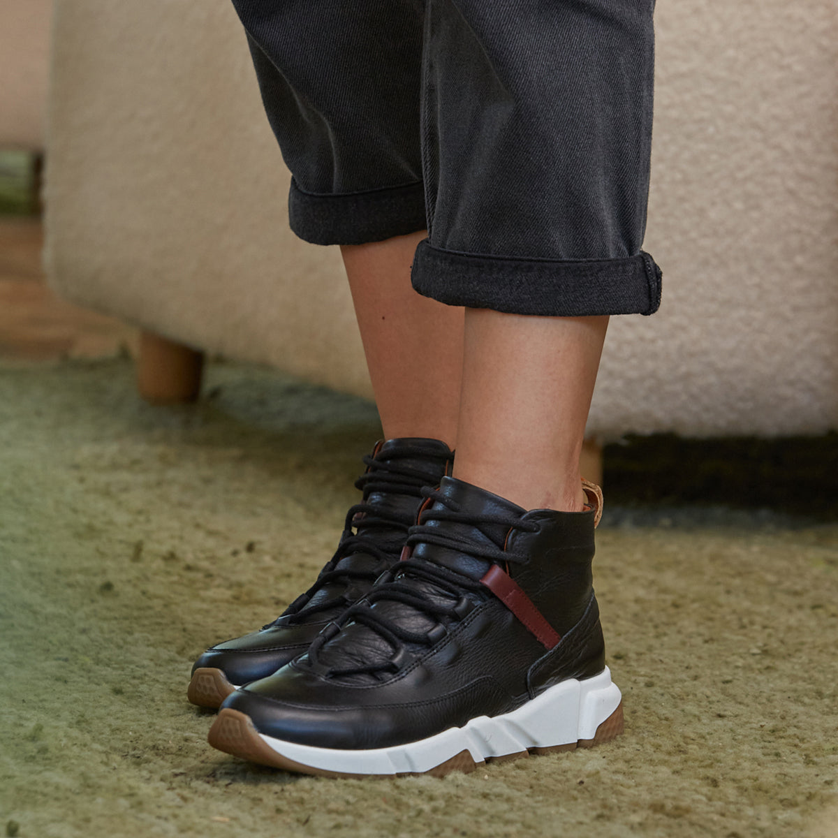 Sneakers Zoe Negro, exterior, interior y plantilla de cuero.