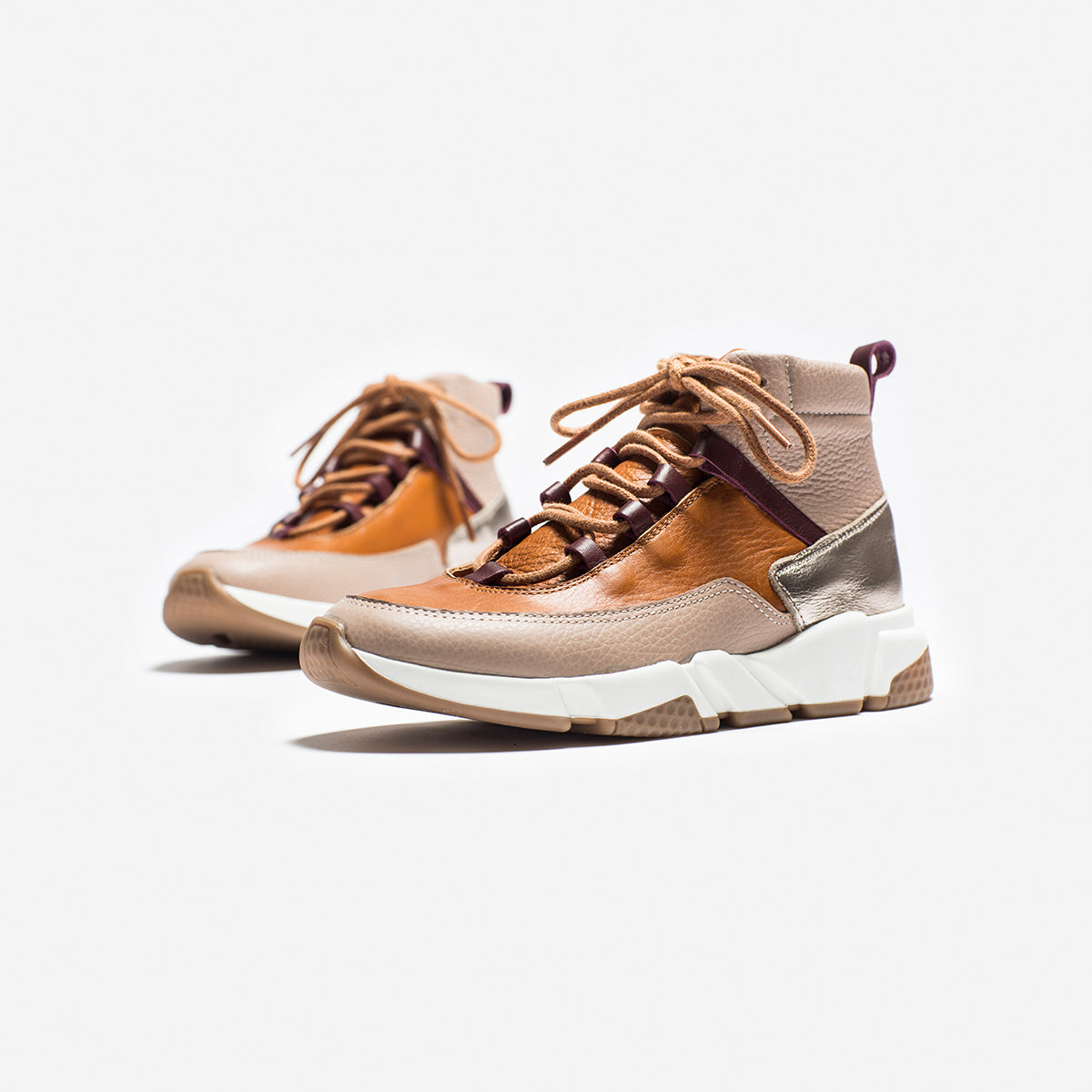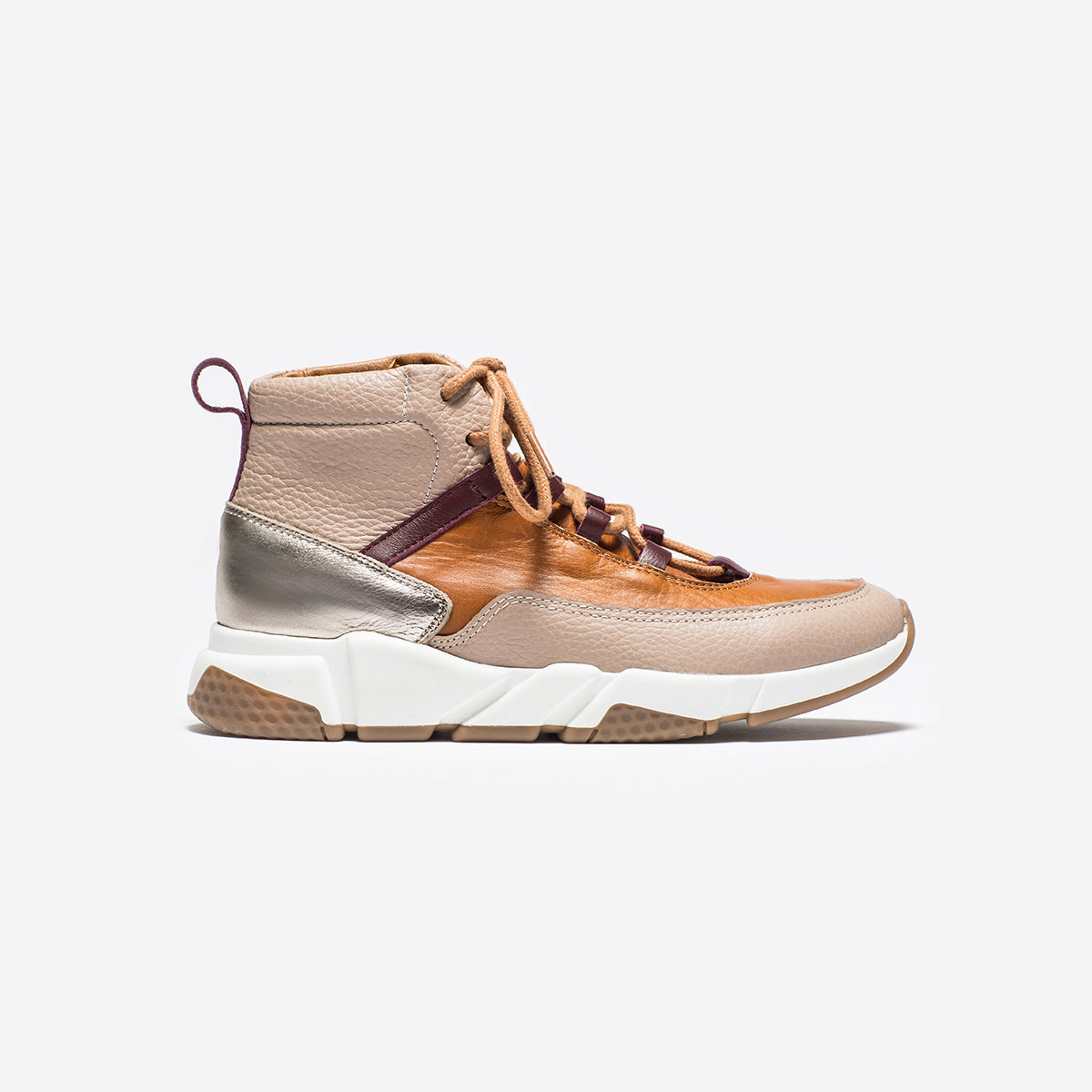 Sneakers Zoe Nude, Suela y Platino, exterior, interior y plantilla de cuero.