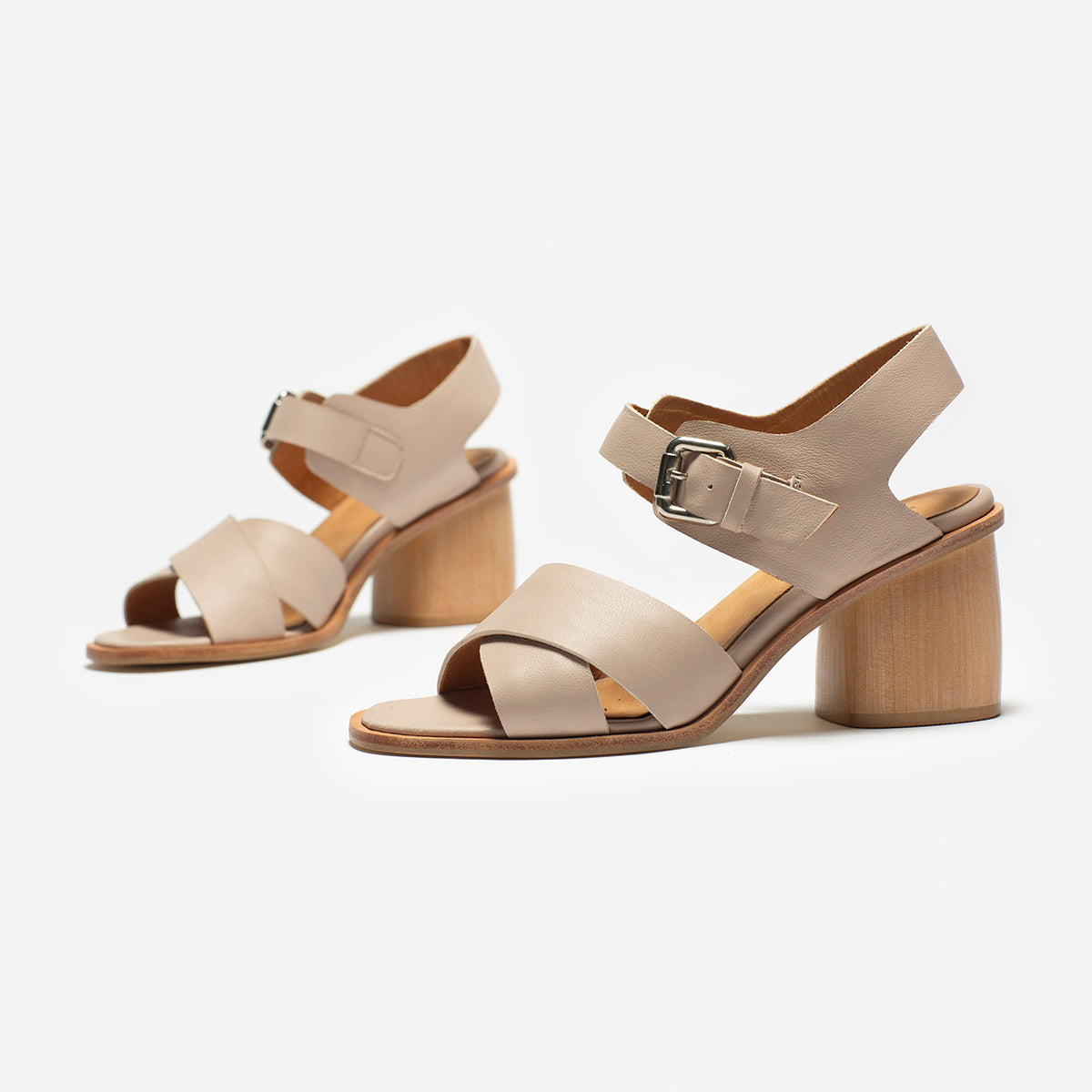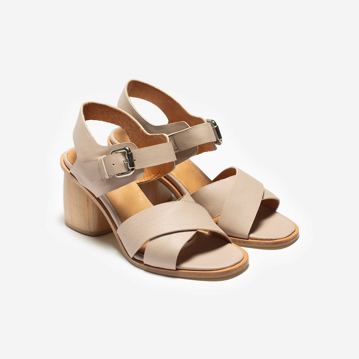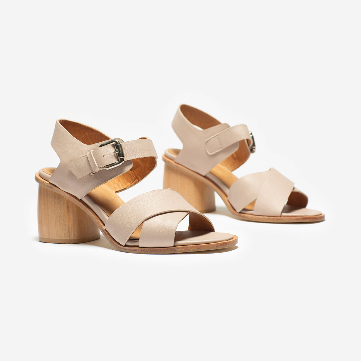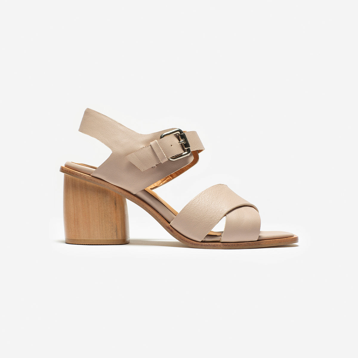 Sandalia Adele cuero nude, interior y plantilla de cuero. Taco de madera de 8cm.