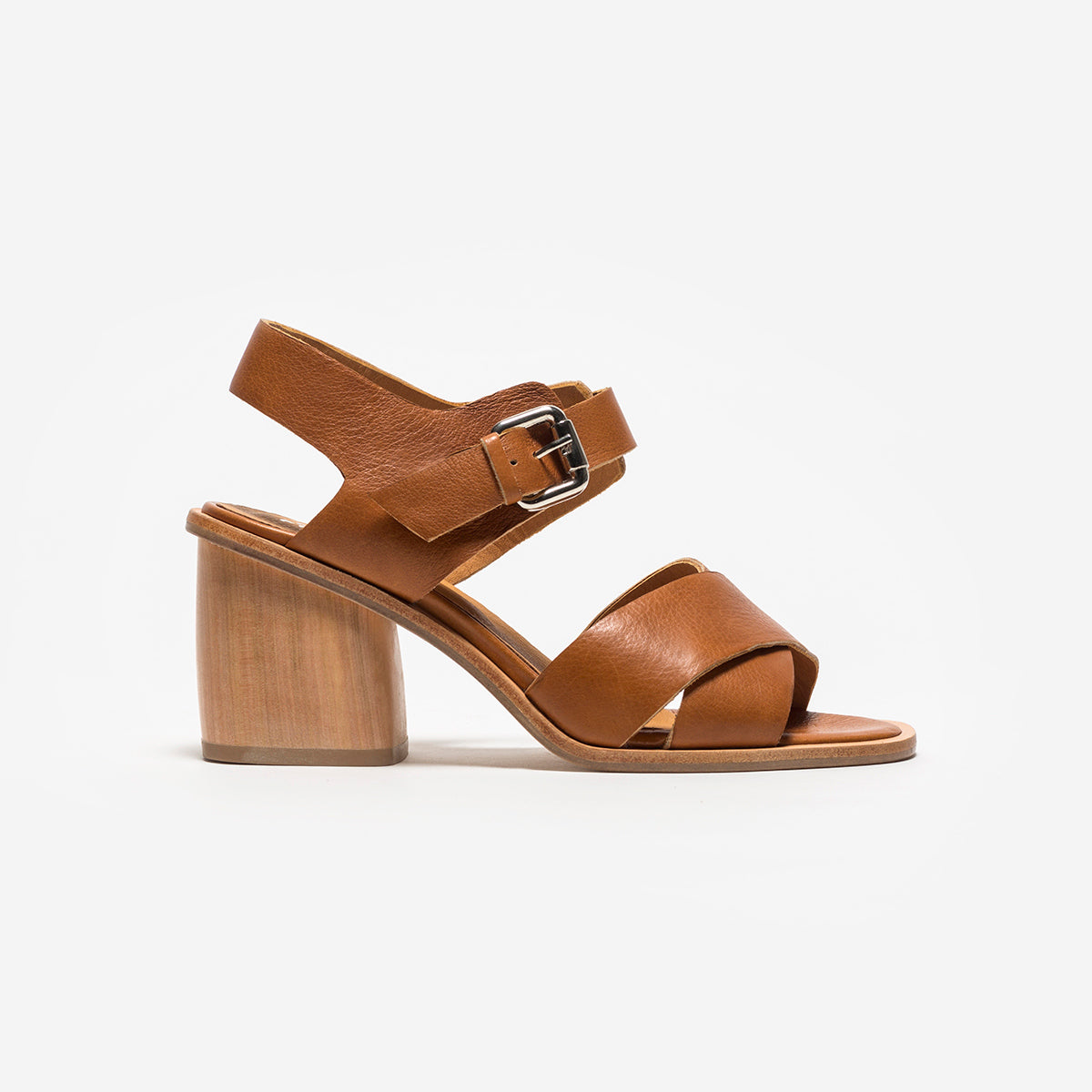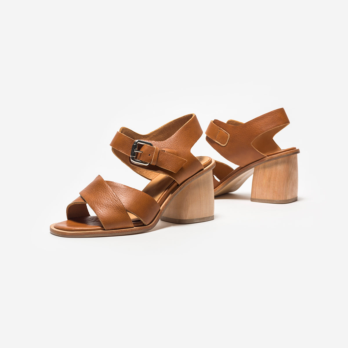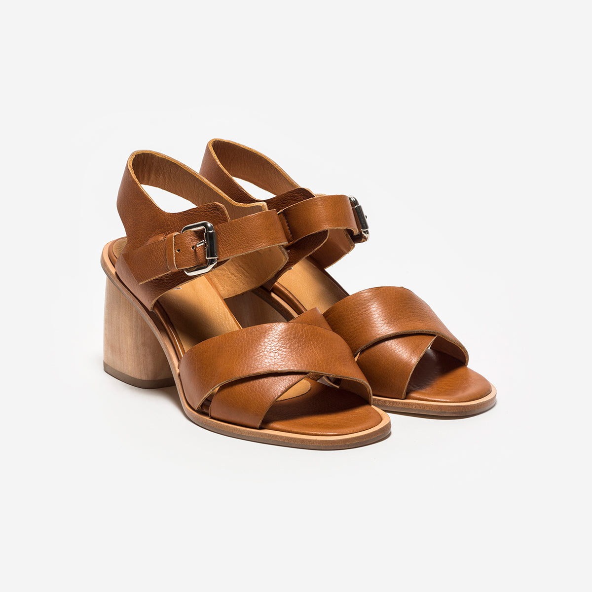 Sandalia Adele cuero suela, interior y plantilla de cuero. Taco de madera de 8cm.
