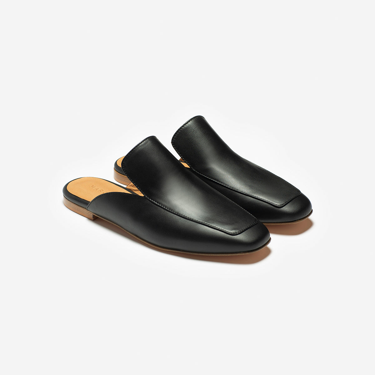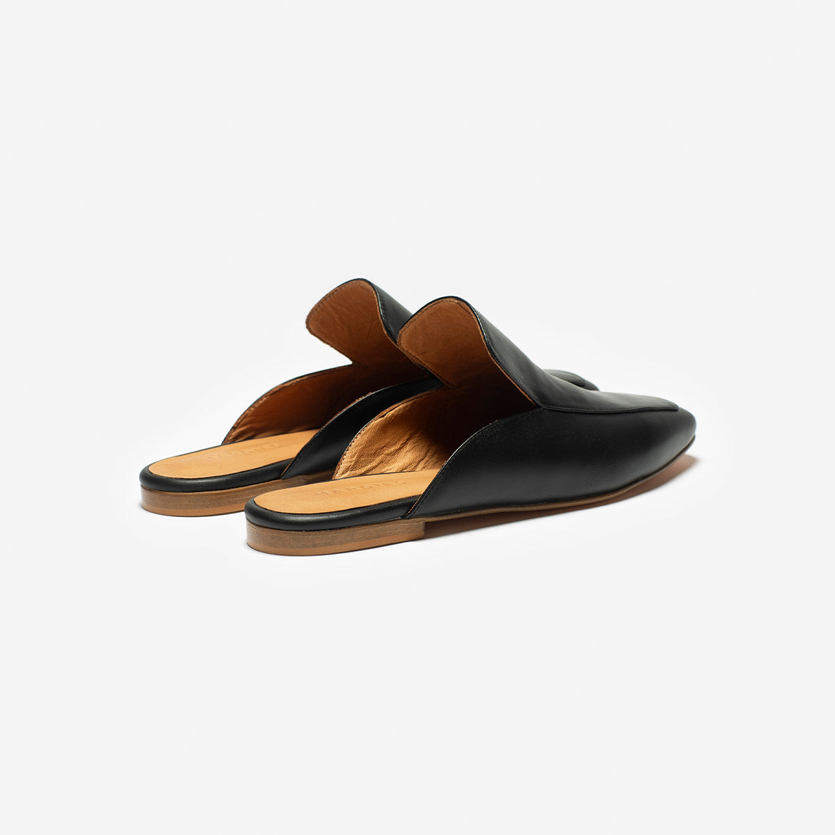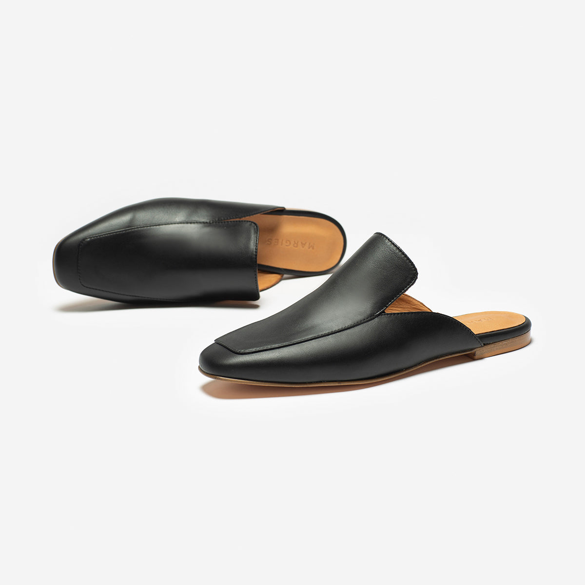 Mules Belmont Negro, base Suela 1 cm, interior y plantilla de cuero.