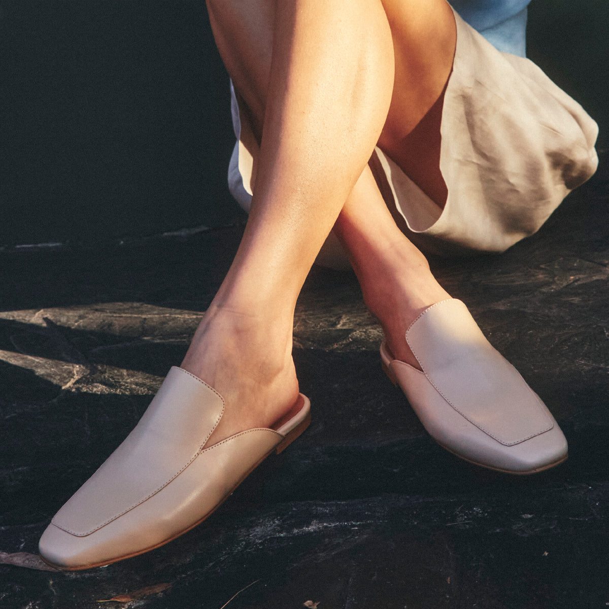 Mules Belmont Nude, base Suela 1 cm, interior y plantilla de cuero.