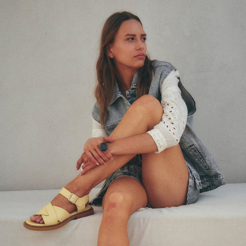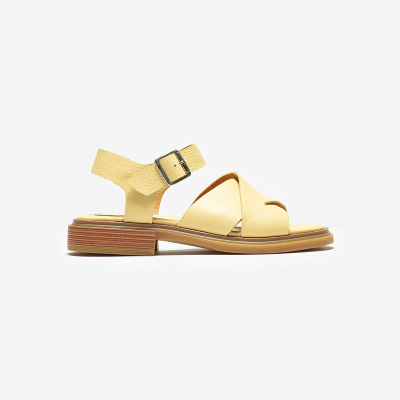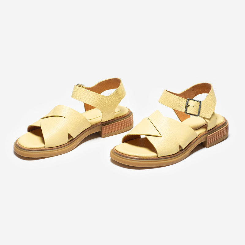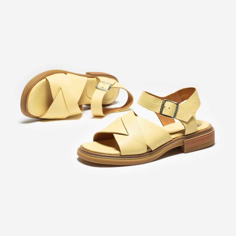 Sandalia Fuyu Amarillo, base 2 cm, interior y plantilla de cuero.