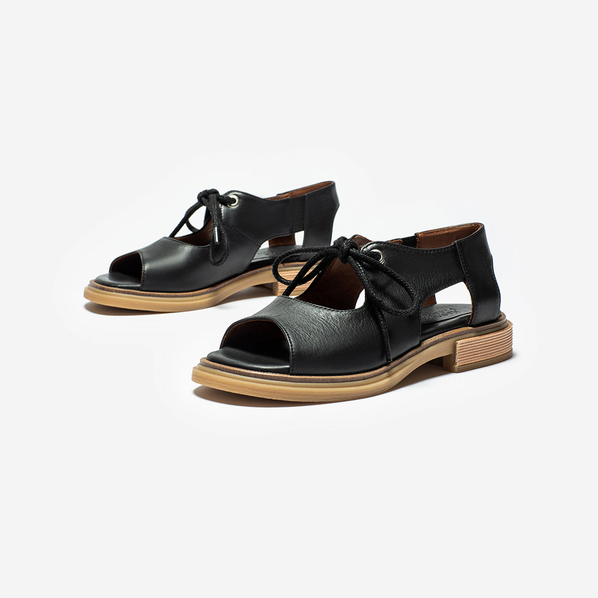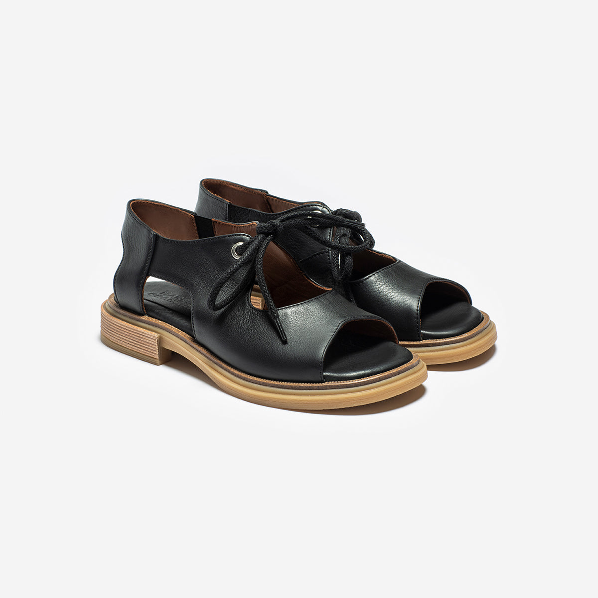 Abotinado Ishi Negro con cordón, base 2.5 cm, interior y plantilla de cuero.