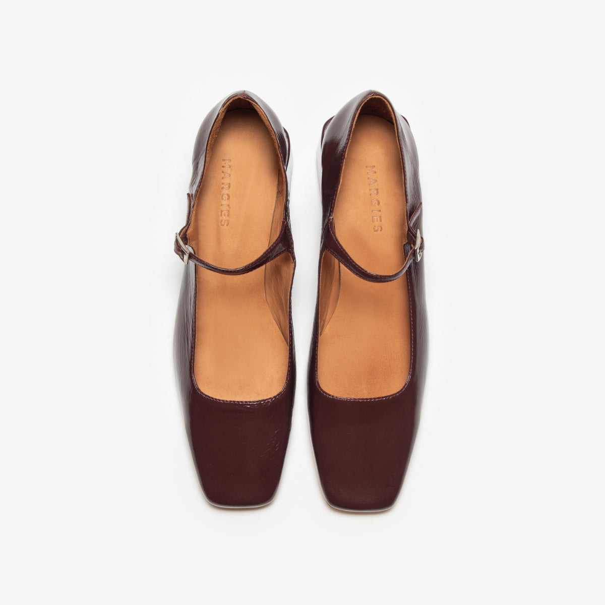 Abotinado Jarl Charol Burgundy, interior y plantilla de cuero. Taco de 4.5 cm de alto.