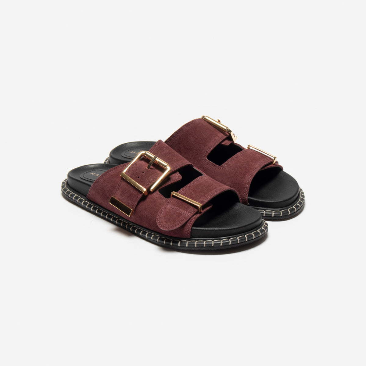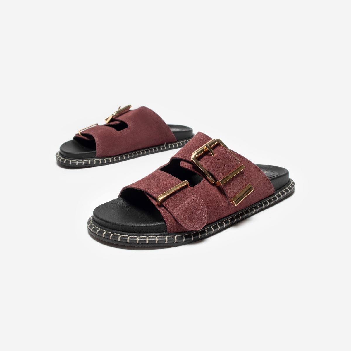 Sandalia Oreira Bordeaux, interior y plantilla de cuero.