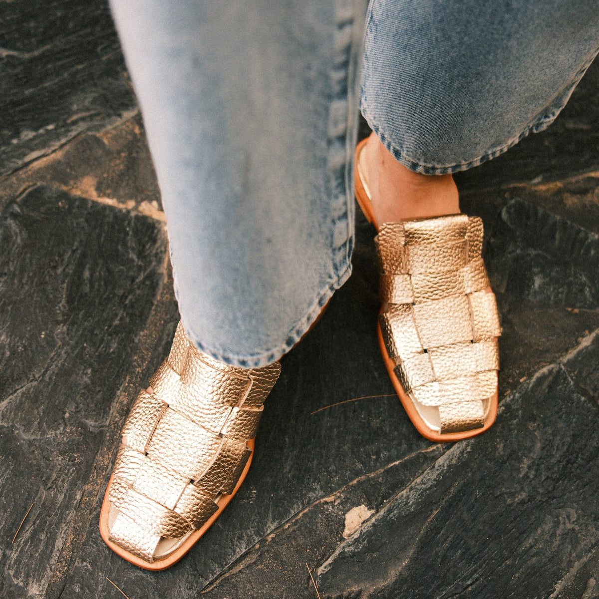 Mules Selmes Oro, base 1 cm, interior y plantilla de cuero.