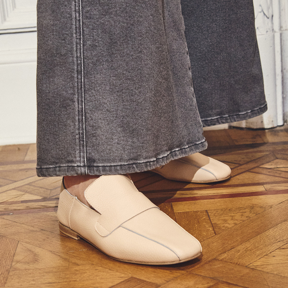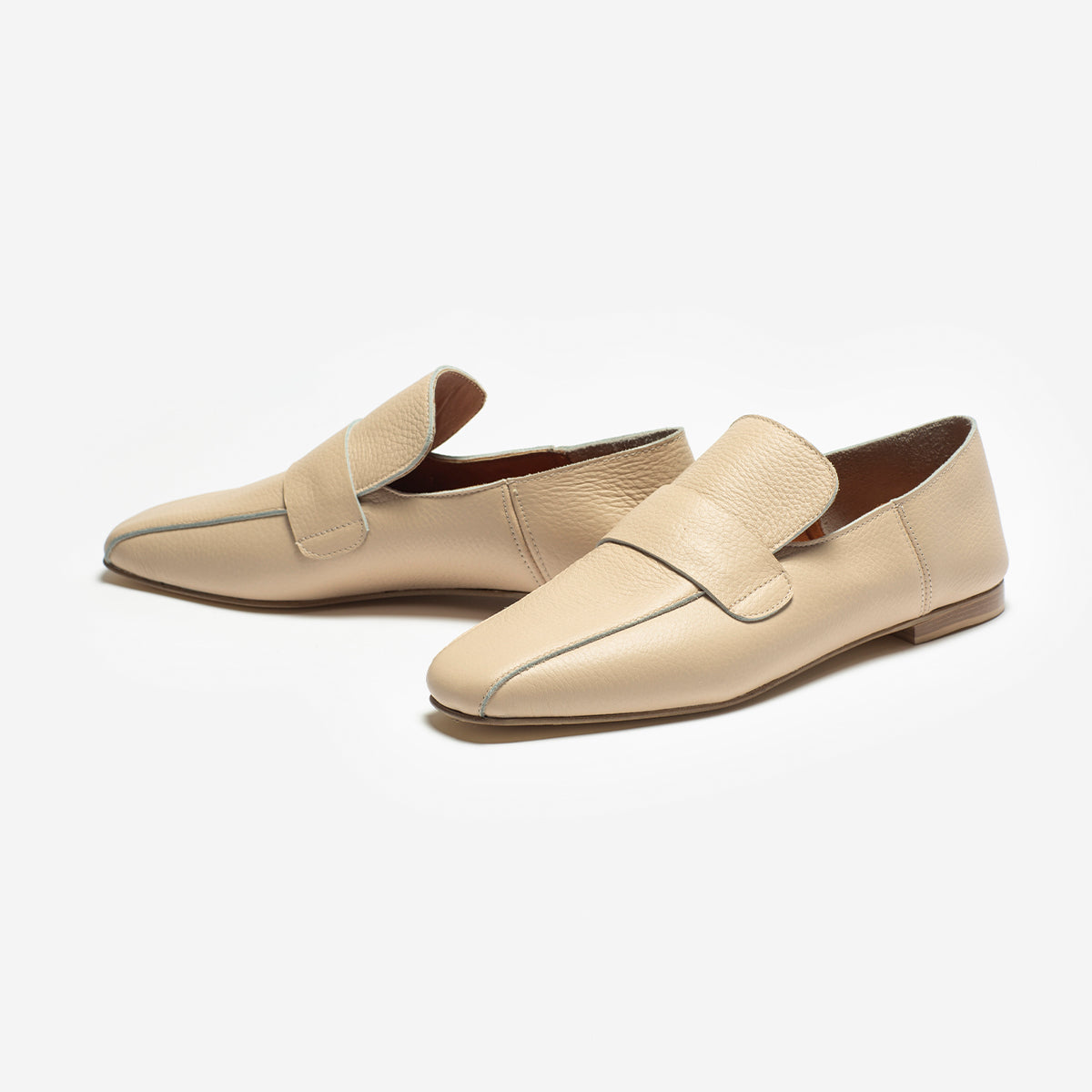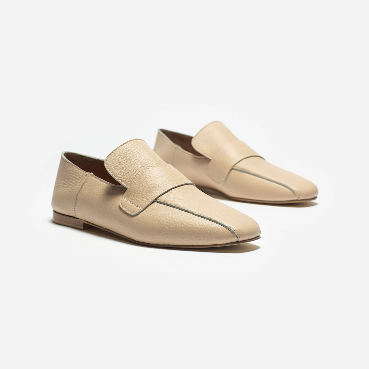 Mocasín Benjamin Off White, exterior, interior y plantilla de cuero.
