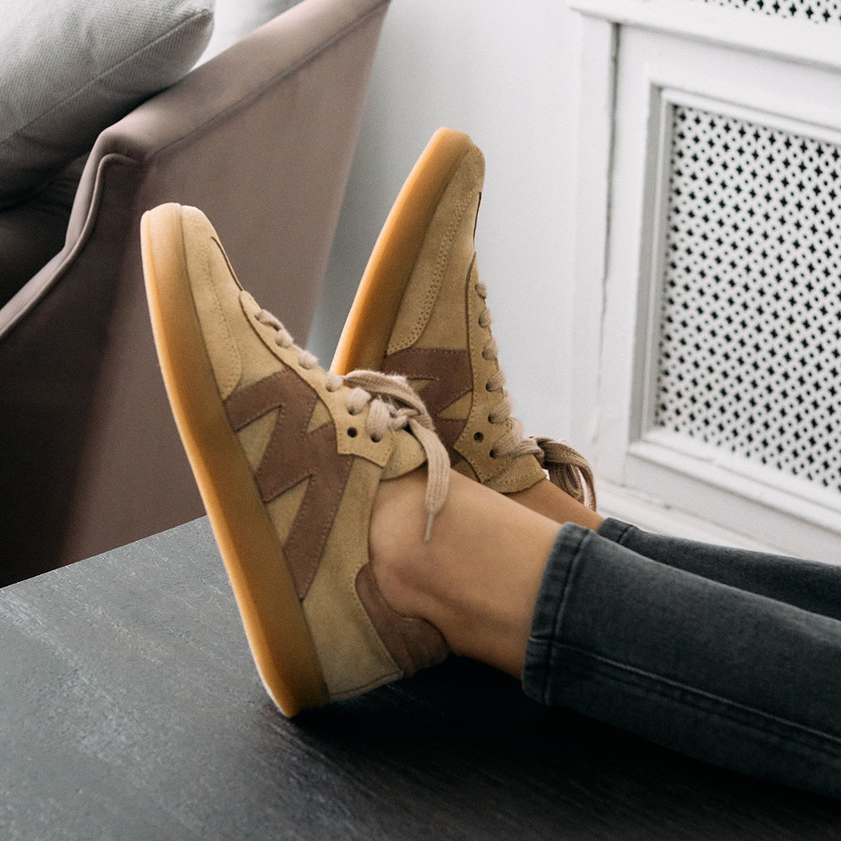 Sneakers Mab Camel, exterior, interior y plantilla de cuero.