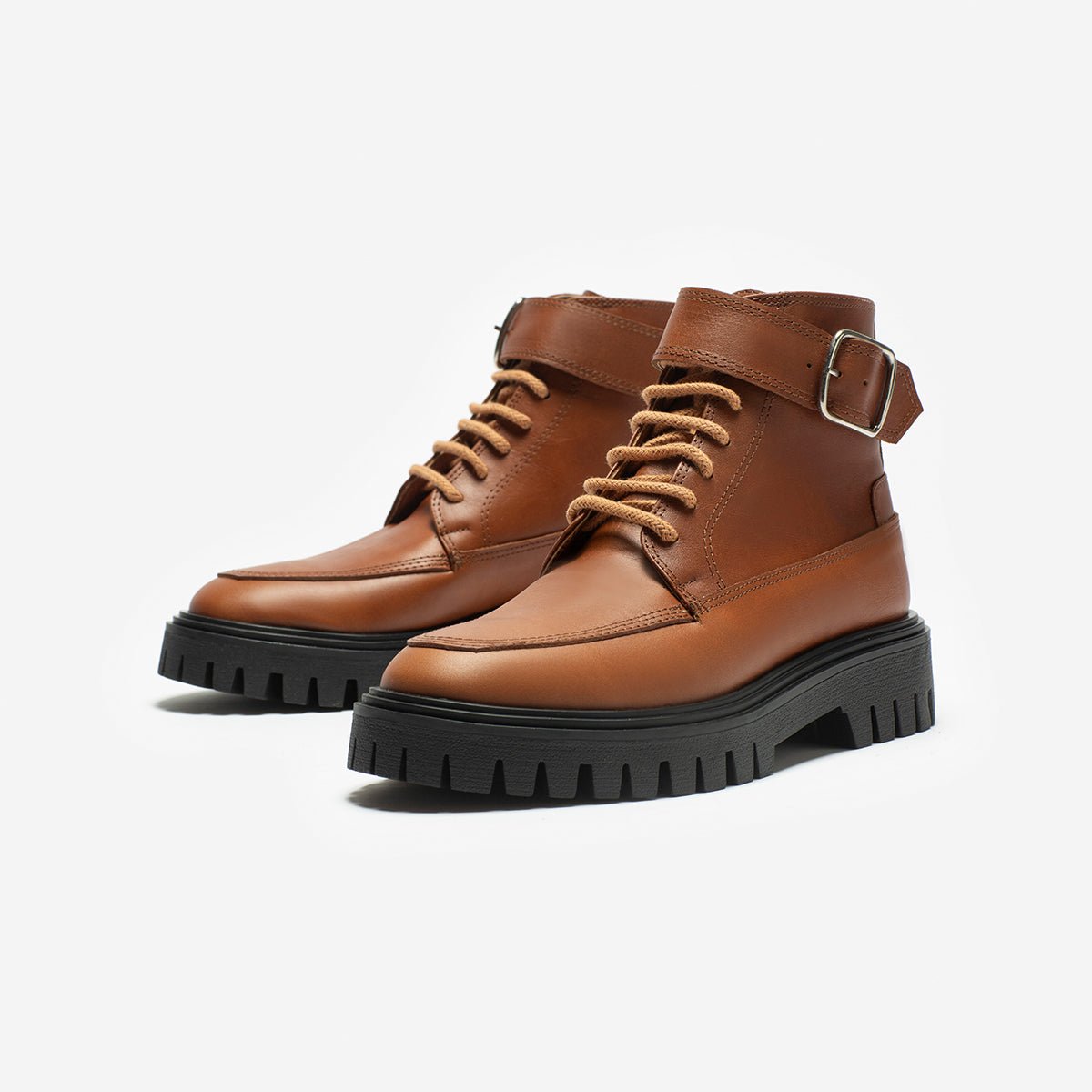 Borcego Tarvos Almendra, exterior, interior y plantilla de cuero.